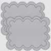 Rectangle embroidered placemat bordered with a two contrast embroidered scalloped trim.