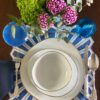 Linen placemat with appliqué in palace blue and crisp white.