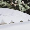 Our Perlas collection on 400 thread count egyptian satin cotton sheeting is embellished with oversize scalloped trim and embroidered dots in scallops.