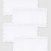 This set of four of four cocktail napkins is made into a rectangle design bordered with an embroidered scalloped trim