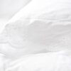 Colección de sábanas con tira bordada de algodón con motivos florales y terminación en ondas. Están confeccionadas en percal de algodón egipcio 600 hilos. Hecho en España.