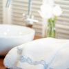 Toalla de invitados de lino con tira bordada.