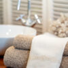 Toalla de invitados de lino con tira bordada.