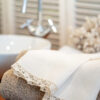 Toalla de invitados de lino con tira bordada.